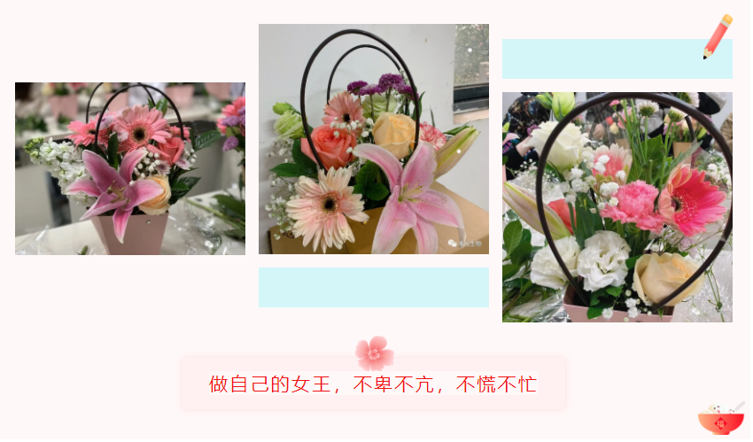 經(jīng)過(guò)1個(gè)小時(shí)的培訓(xùn)和親手實(shí)踐, 一盆盆錯(cuò)落有致、生機(jī)盎然的插花作品終于完成,看著通過(guò)自己雙手制作成的花籃,每個(gè)人的臉上都洋溢著喜悅的笑容。