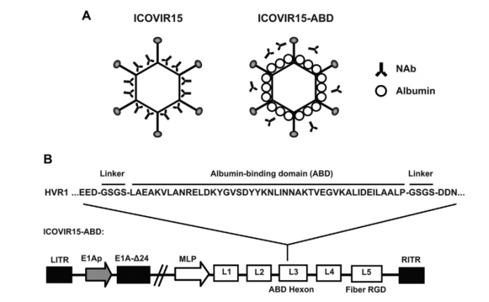 [2]Rojas LA, Condezo GN, Moreno R, et al. Albumin-binding adenoviruses circumvent pre-existing neutralizing antibodies upon systemic delivery. J Control Release. 2016;237:78-88.