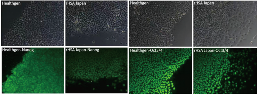與日本市售rHSA相比,0srHSA在iPS細(xì)胞培養(yǎng)中能有效的促進(jìn)細(xì)胞增殖,維持細(xì)胞形態(tài),并且能更有效的維持iPS的多功能性。